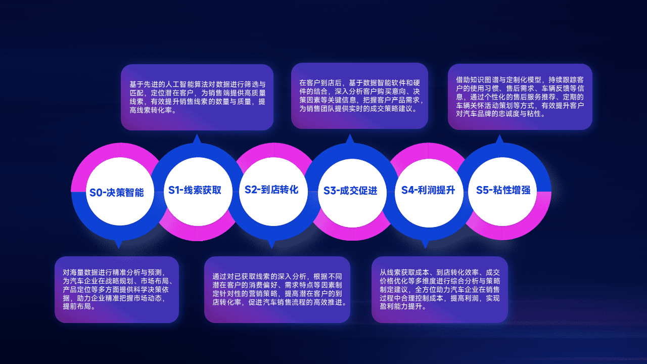 通过拓宽潜在客户来源、、、、优化线索分配并提高到店转化率,,,以增强销售效率。。同时,,,,利用线索数据不断优化分析模型,,,,有效提升转化率,,扩大营销影响力。。。